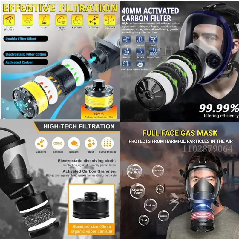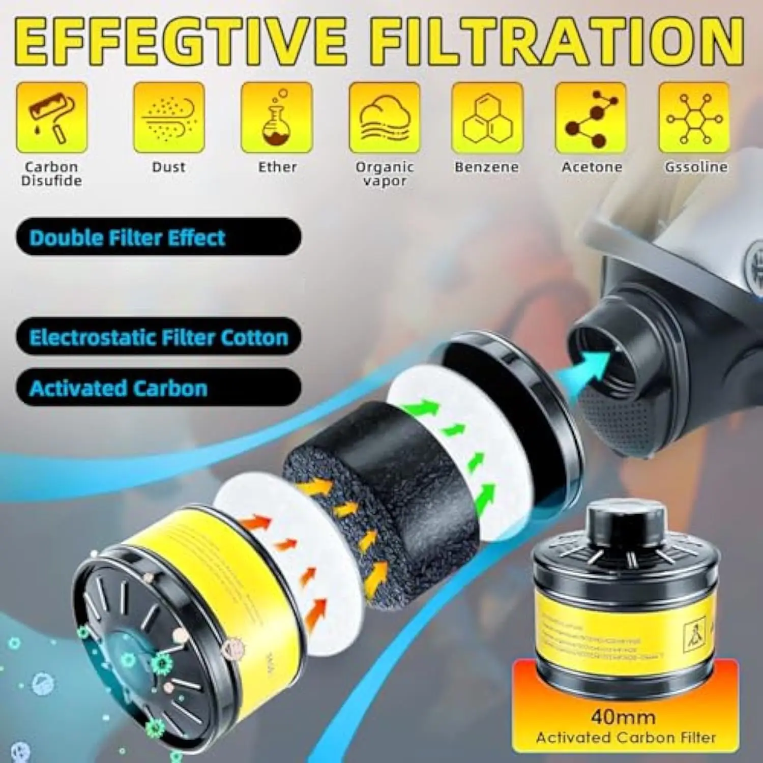The 40mm respirator filter is composed of activated carbon and electrostatic filter cotton, with higher adsorption and filtration capacity, effectively removing dust, organic vapor, particulate matter, and so on.
