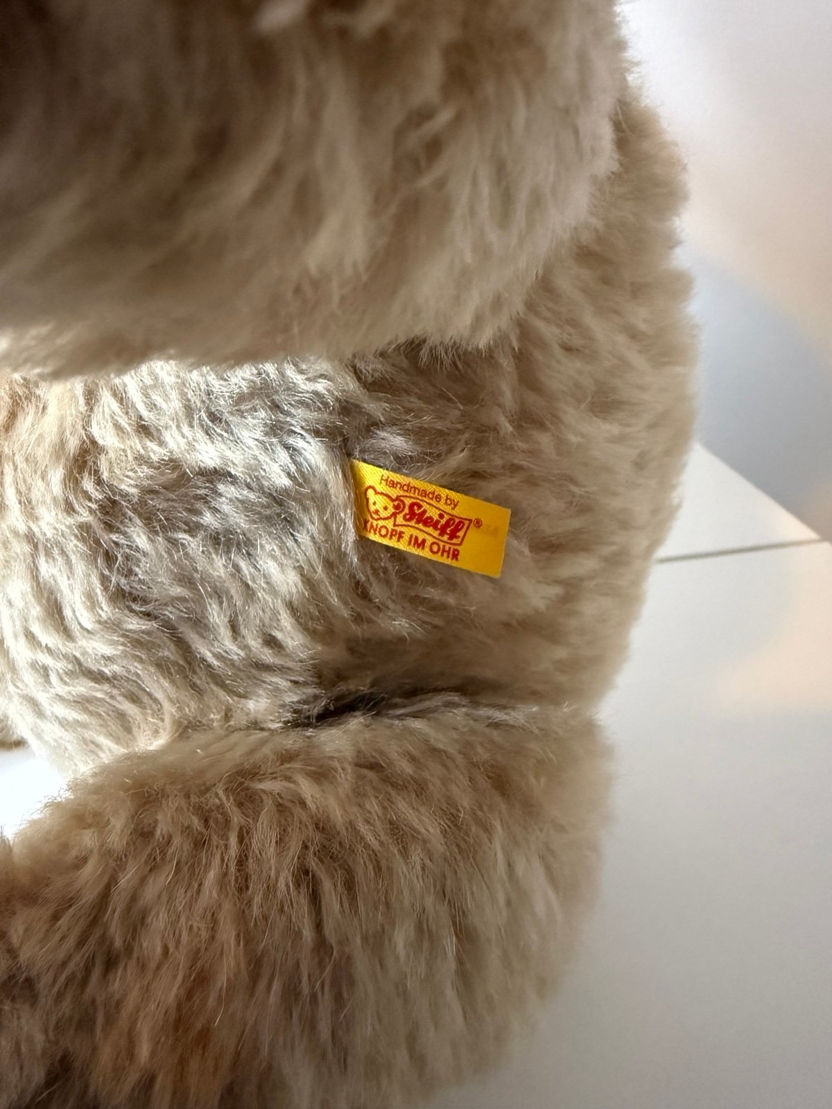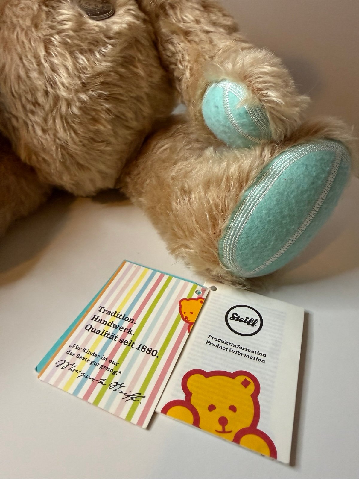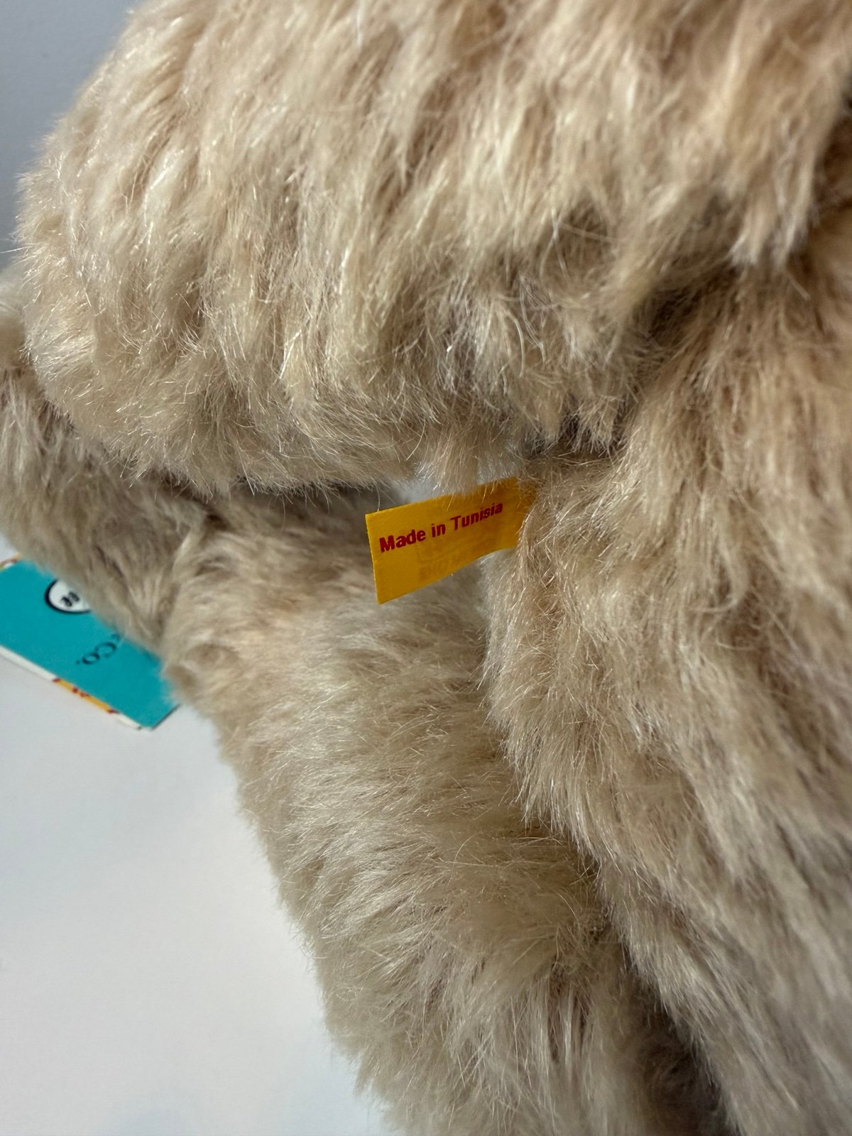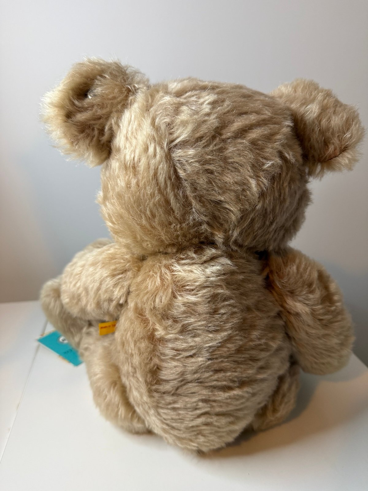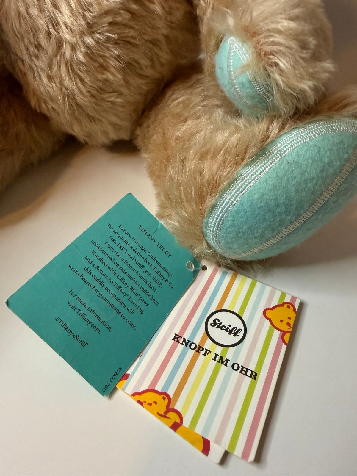 Mohair Teddy Bear from Tiffany and Steiff collaboration. Features Tiffany Blue paws and Return to Tiffany love tag (sterling silver), 10.5 inches (27 cm) tall. Made in Tunisia. All tags are still attached. Original price was $700.
